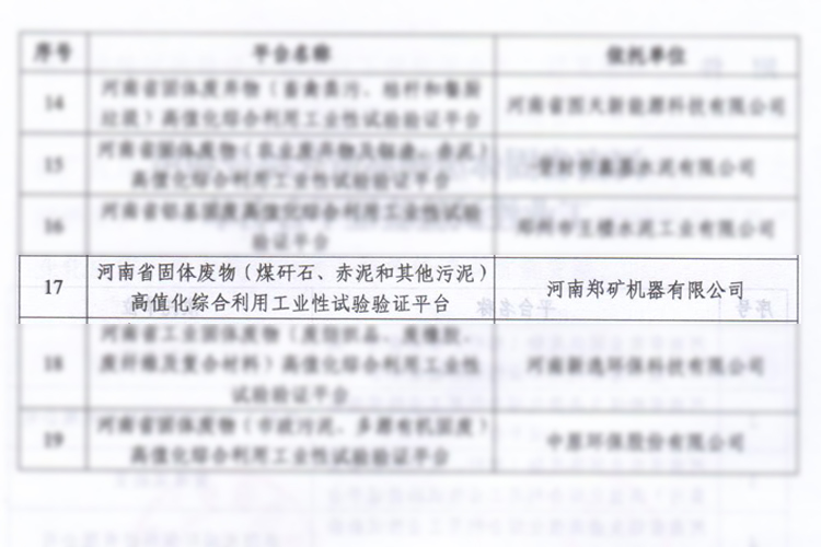 河南鄭礦機器有限公司榮獲河南省固體廢物高值化綜合利用工業(yè)性試驗驗證平臺稱(chēng)號!